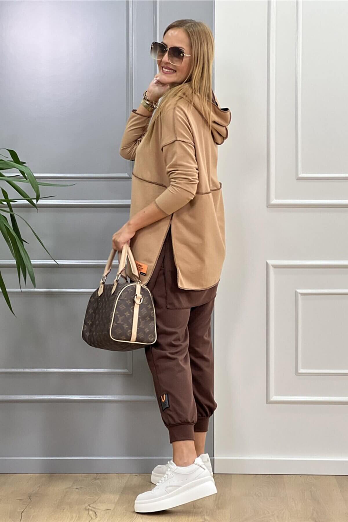 Kahve-camel Kapüşonlu Ikili Takım SMM