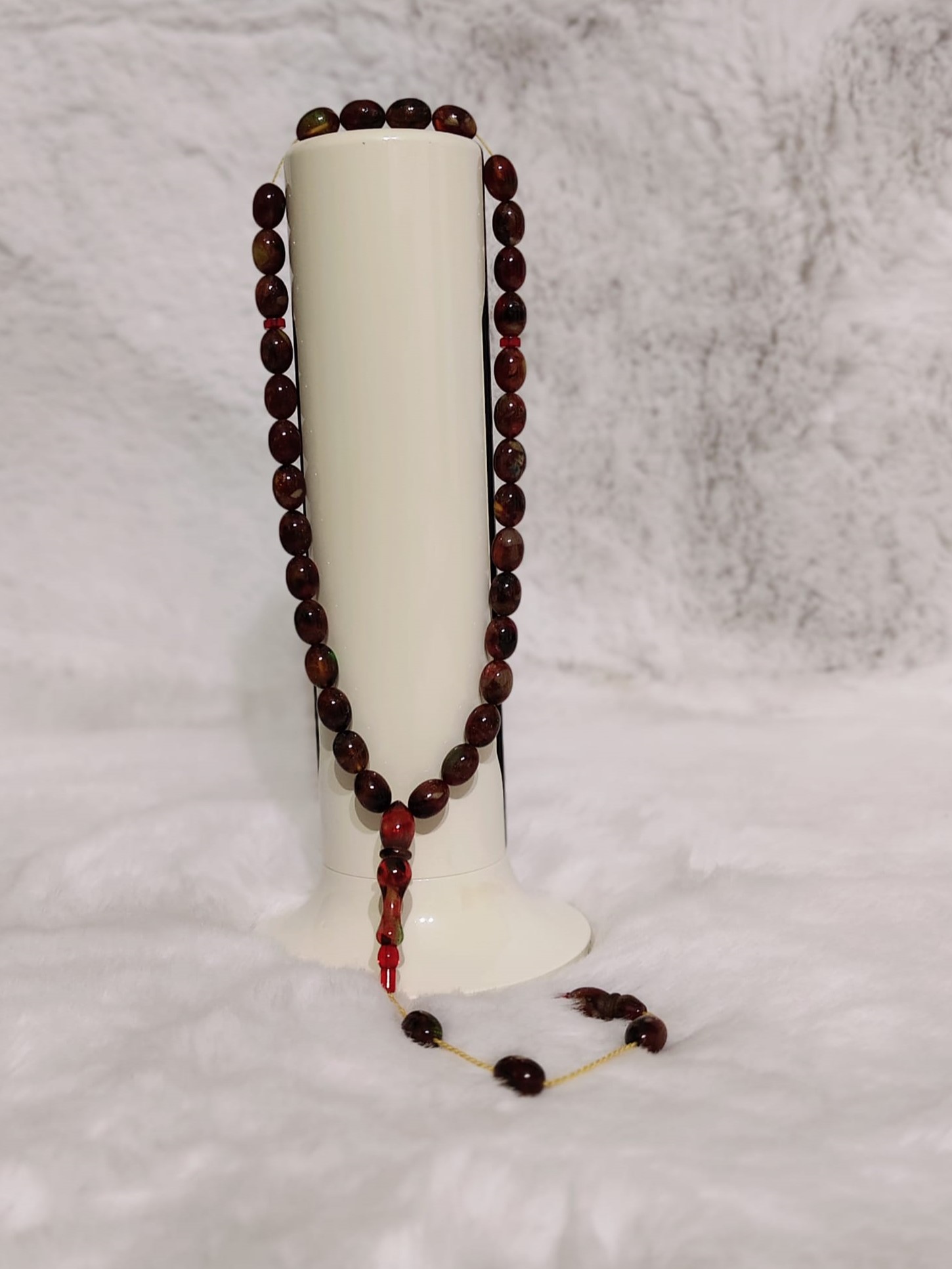 - Beyzi Kesim Kahverengi Siyah Renk Sistemli Püsküllü Toz Kehribar Tesbih
