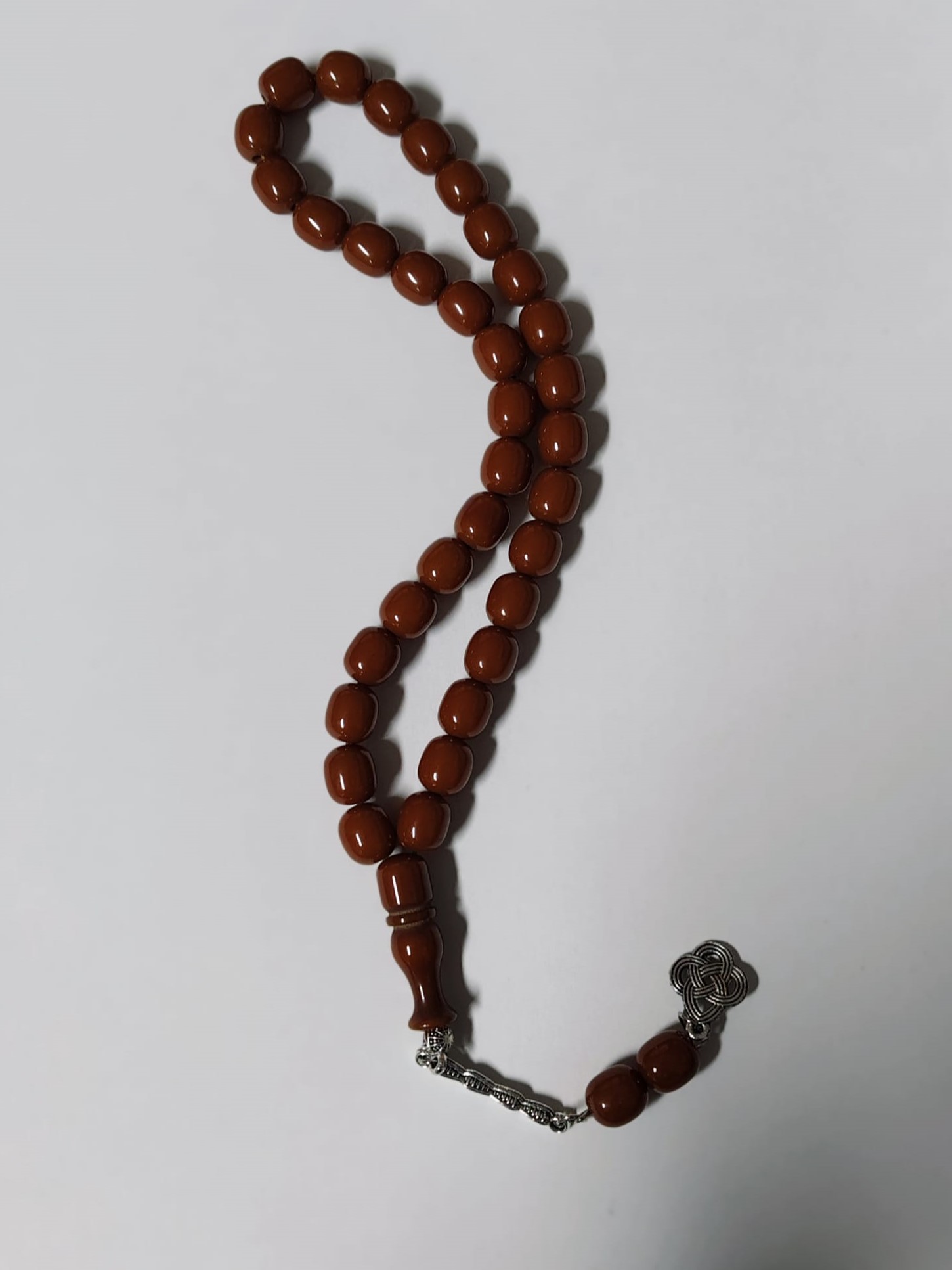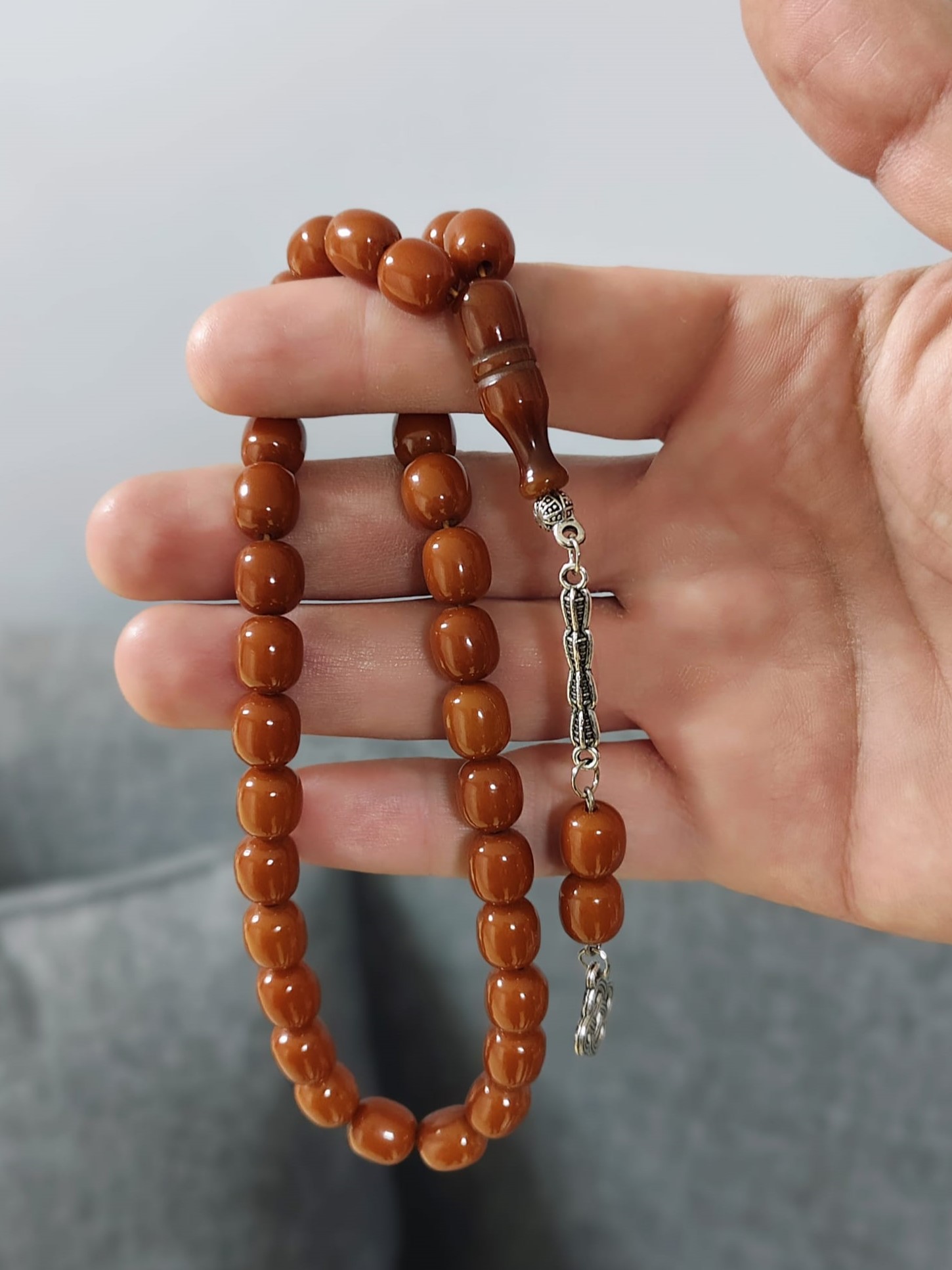 - Küre Kesim Kahverengi Toz Kehribar Tesbih