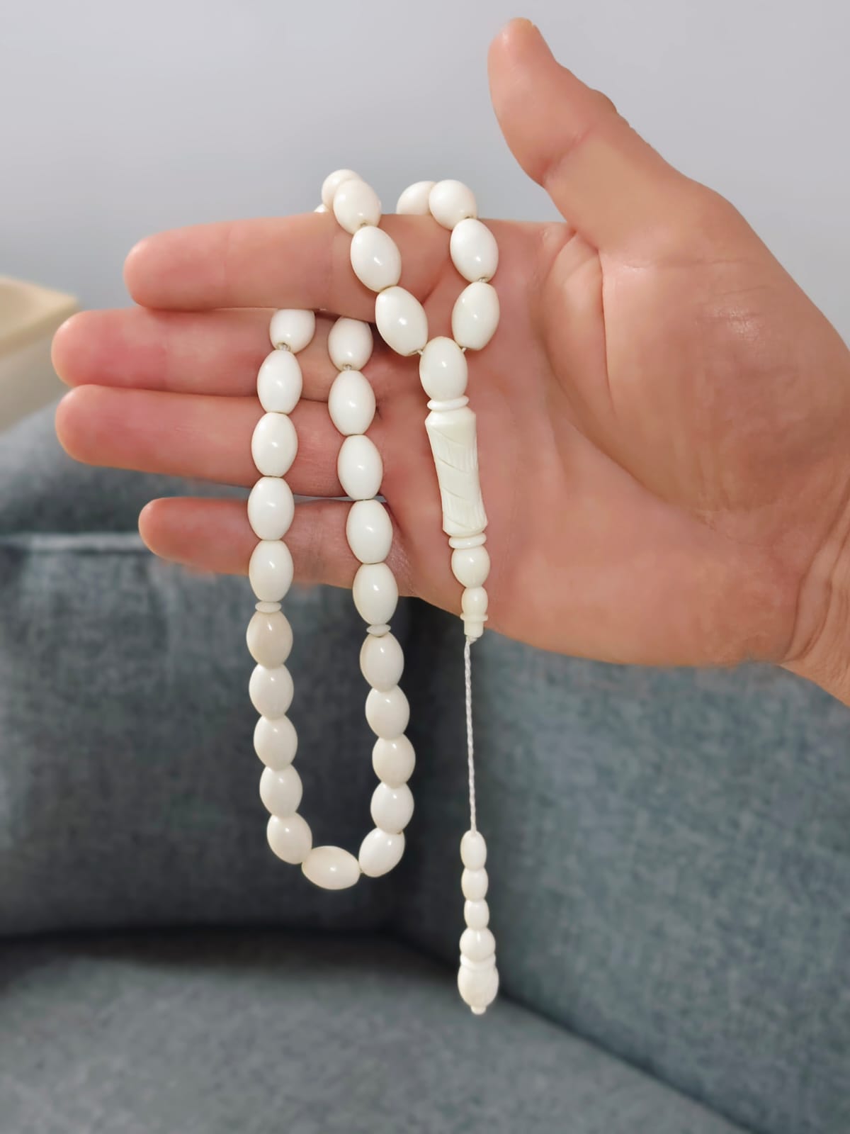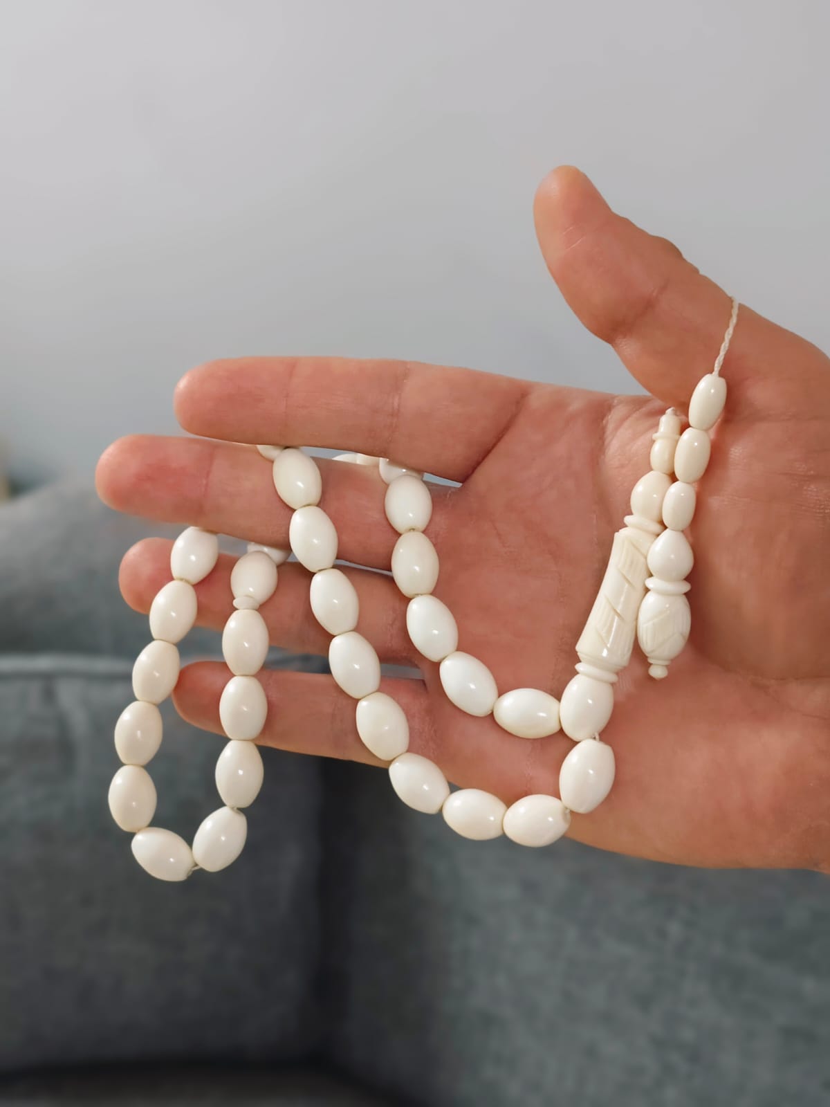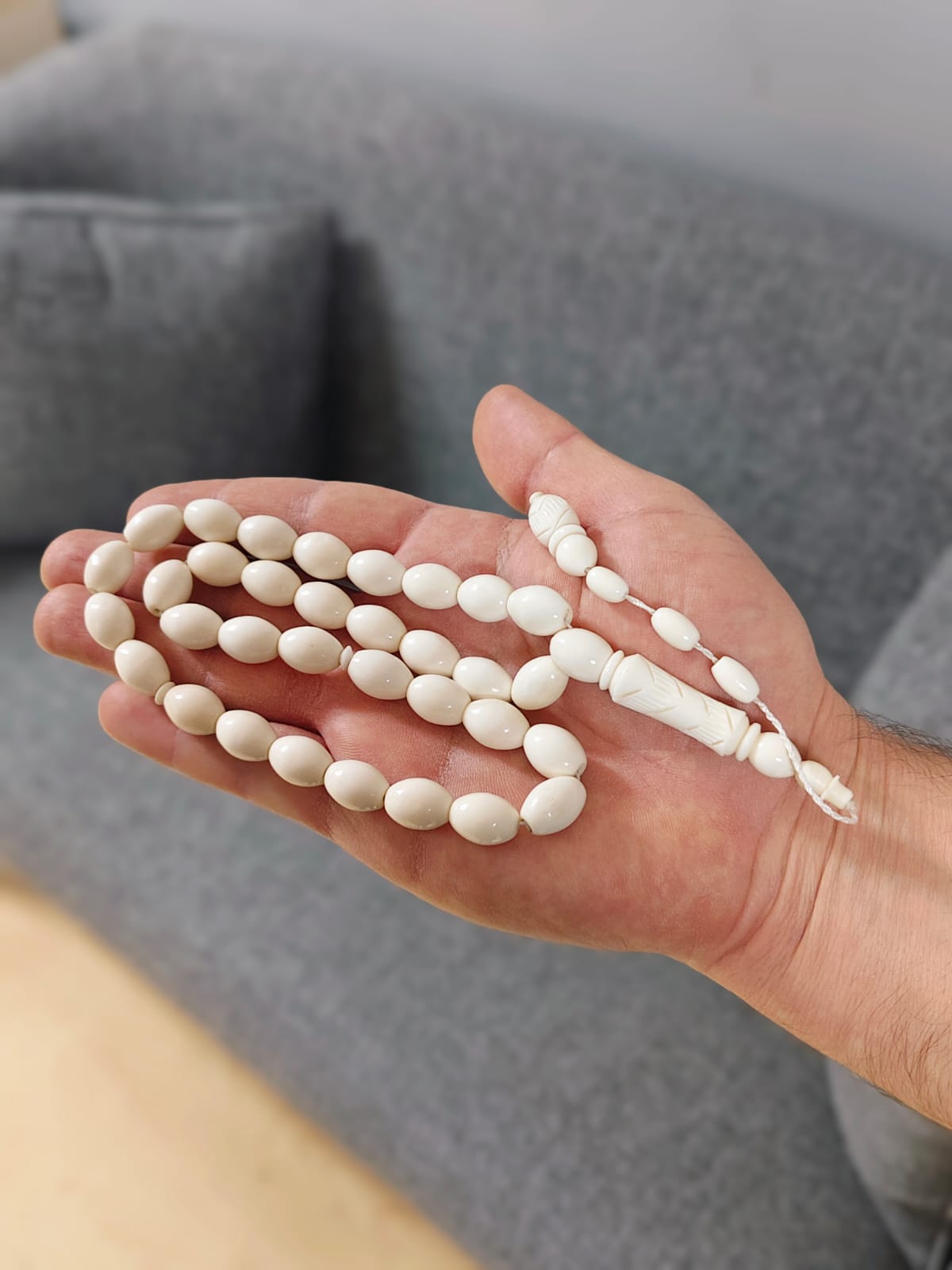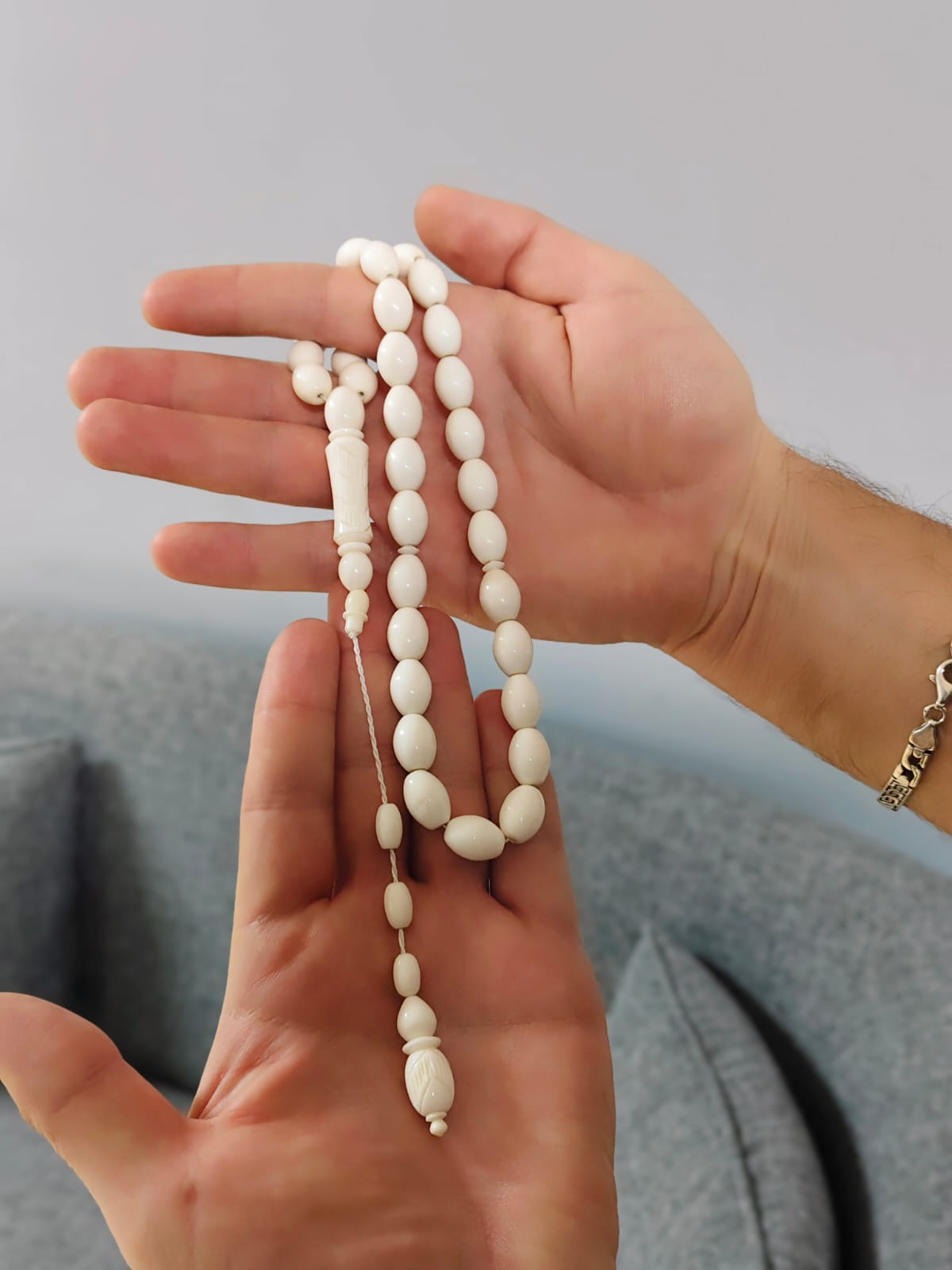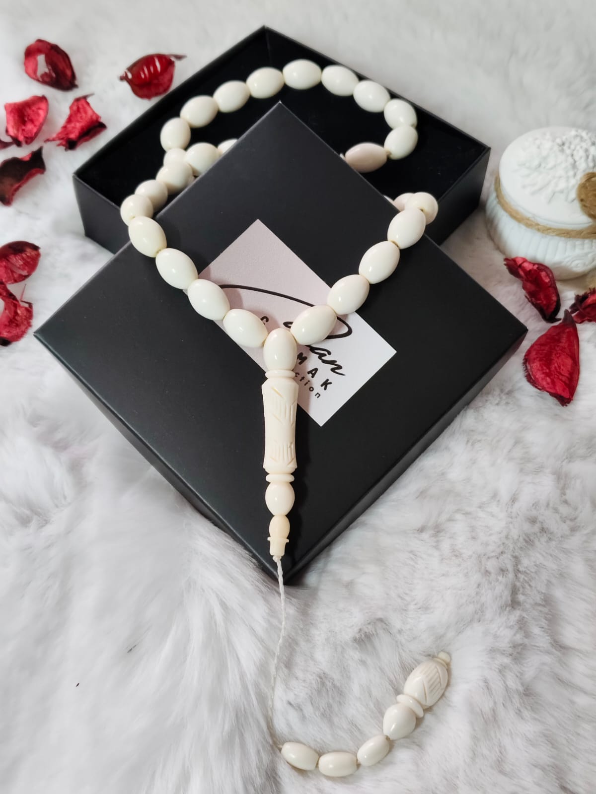 - Kemik tesbihler özel olarak seçilmiş malzemeler kullanılarak elde edilmektedir.;