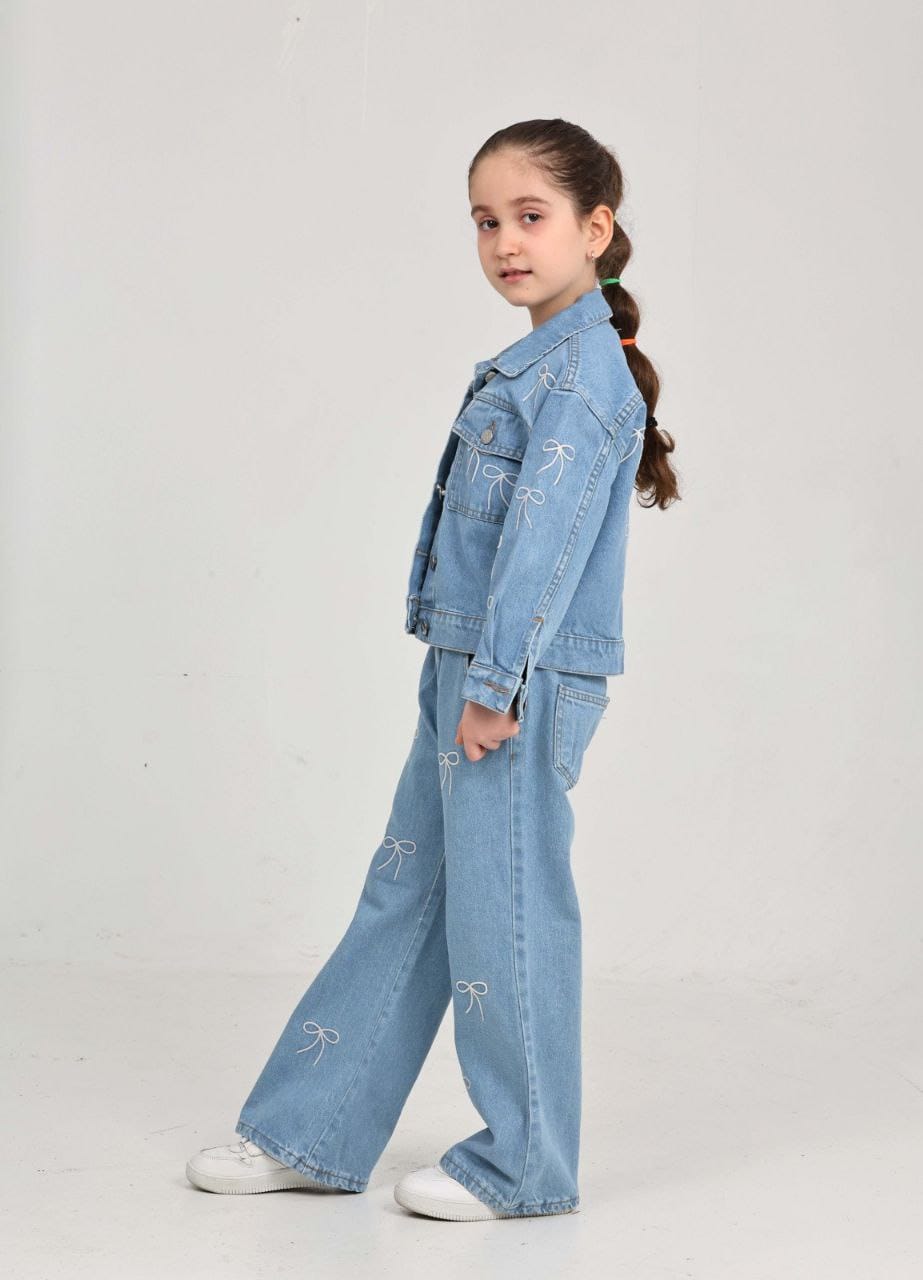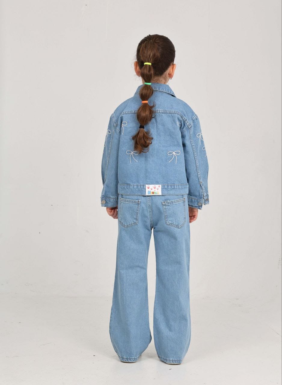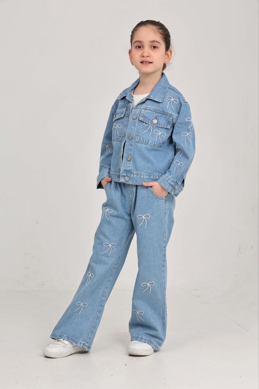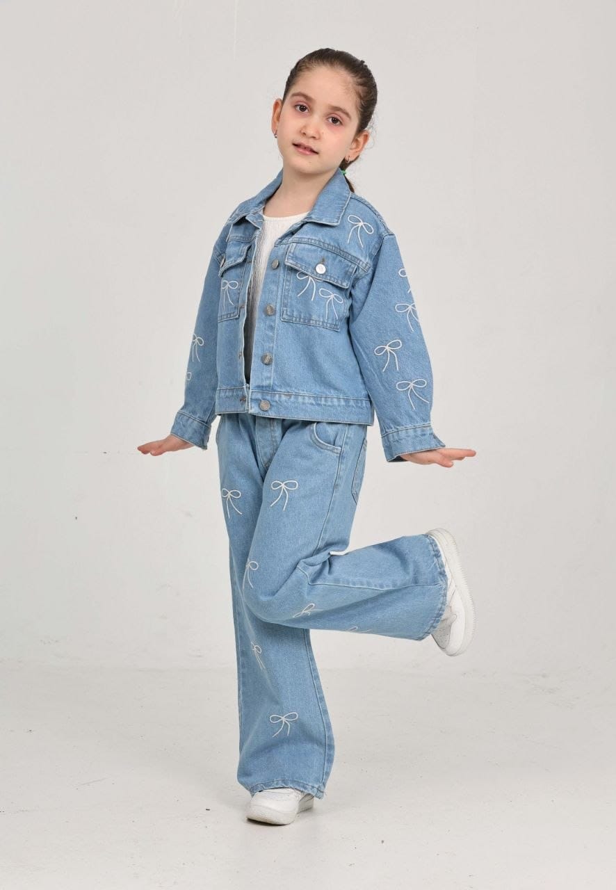 Kız Çocuk Fiyonk İşlemeli Kot Takım