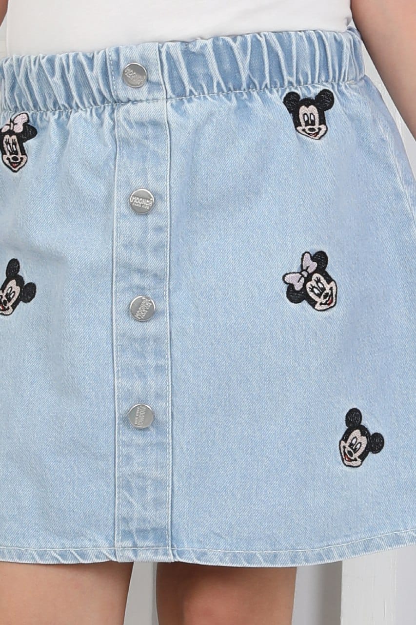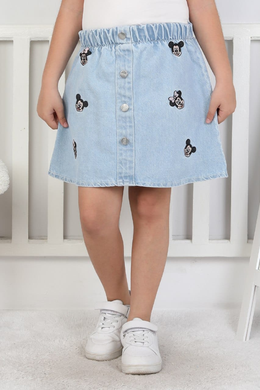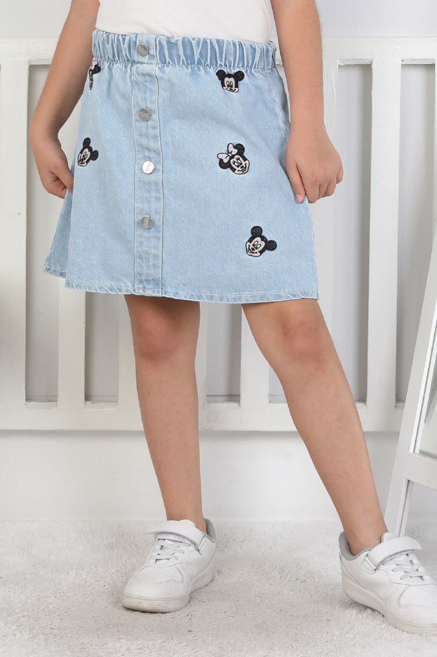 - Kız Çocuk mickey mouse Kot Etek Bu sevimli ve enerjik kot etek, miniklerin günlük kombinlerine eğlenceli bir dokunuş katıyor.