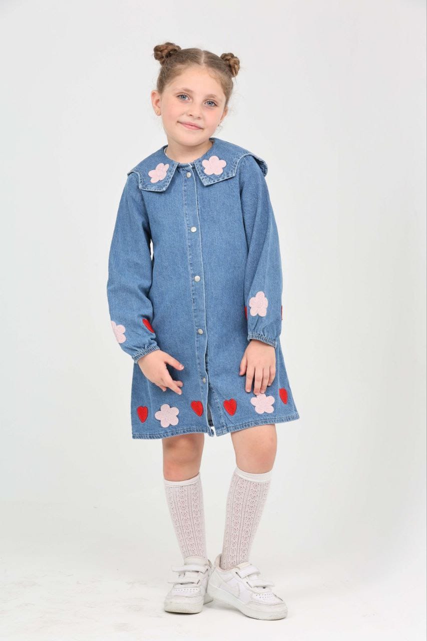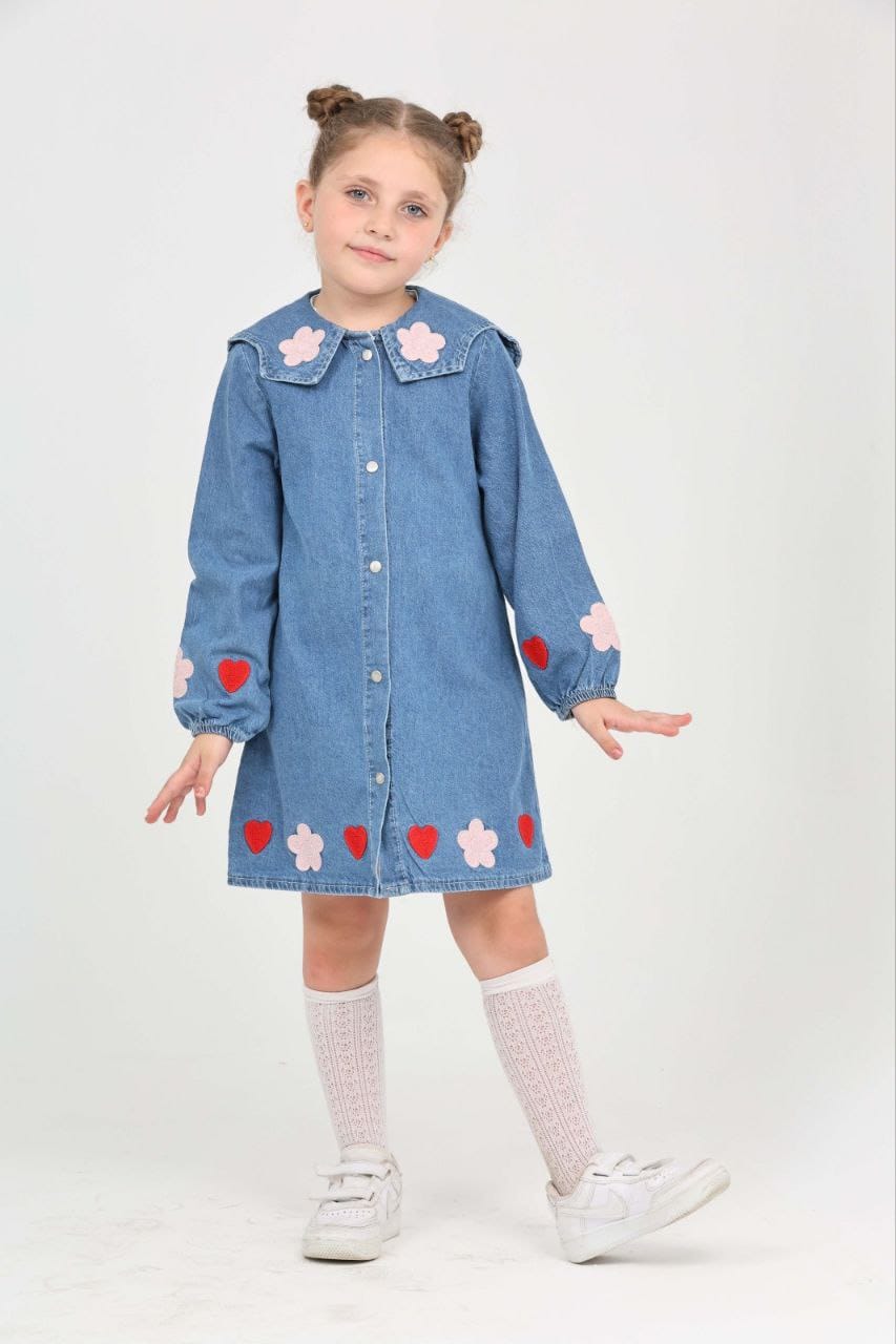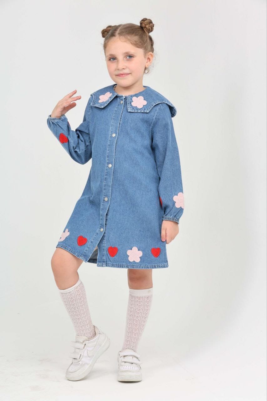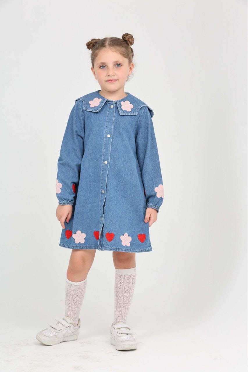 - Mevsimlik Uzun Kollu Papatya ve Kalp İşlemeli Kız Çocuk Elbisesi: Küçük prensesinizin özel günlerde zarafetini ve şıklığını ön plana çıkaracak bu elbise,Üzerinde Papatya ve Kalp İşlemesi ile tatlı bir görünüm saglar