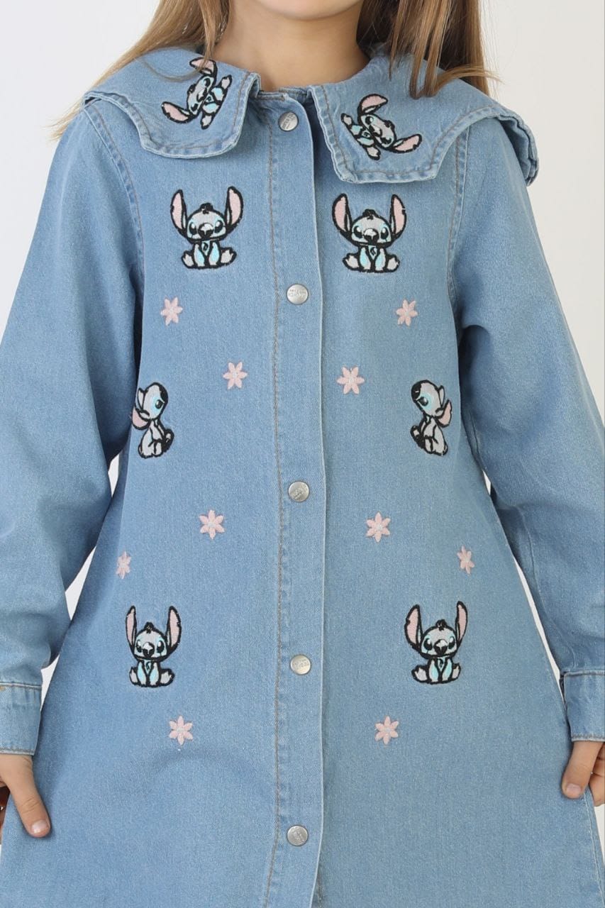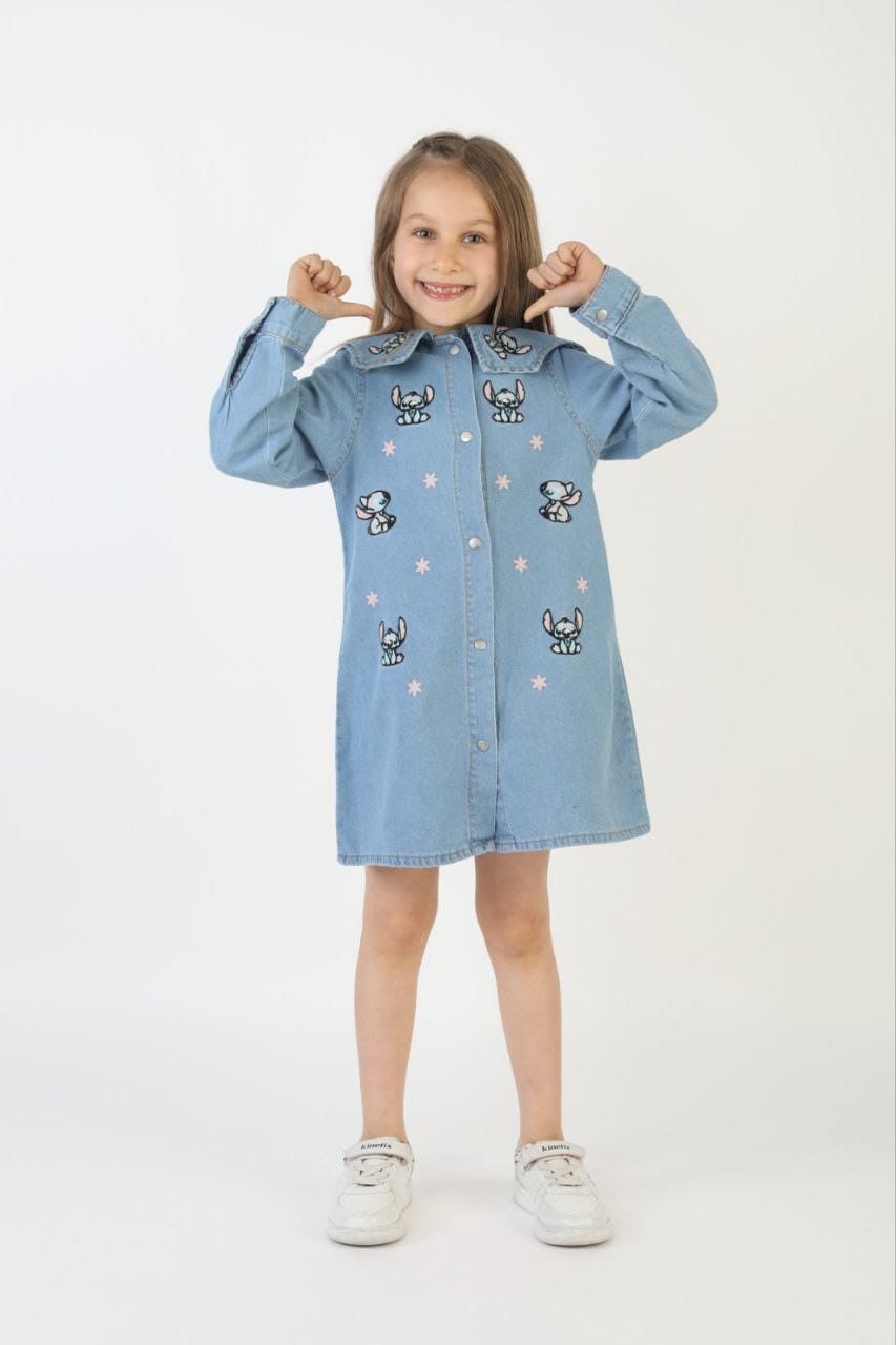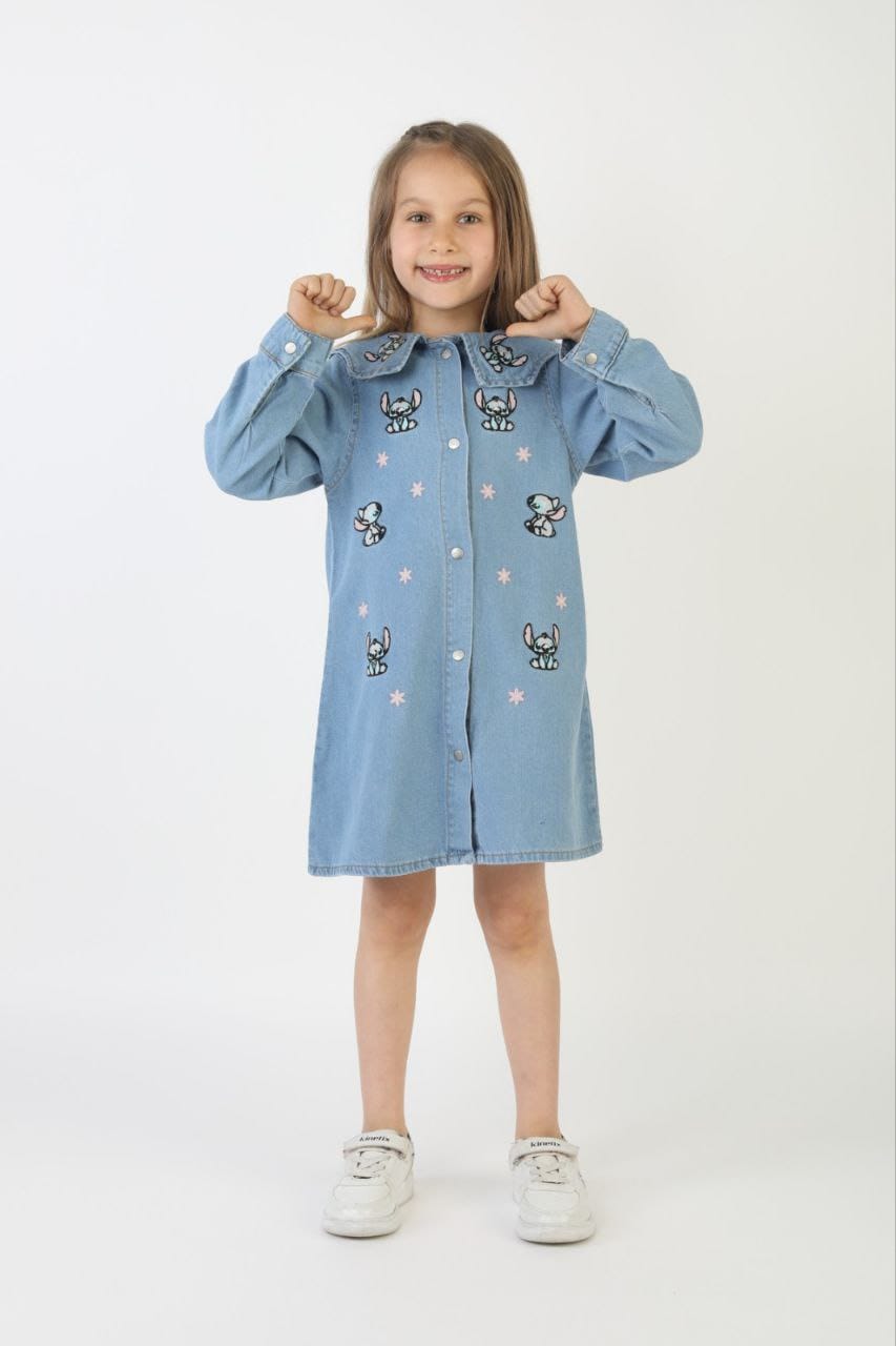 - Mevsimlik Uzun Kollu Tavşan İşlemeli İşlemeli Kız Çocuk Elbisesi: