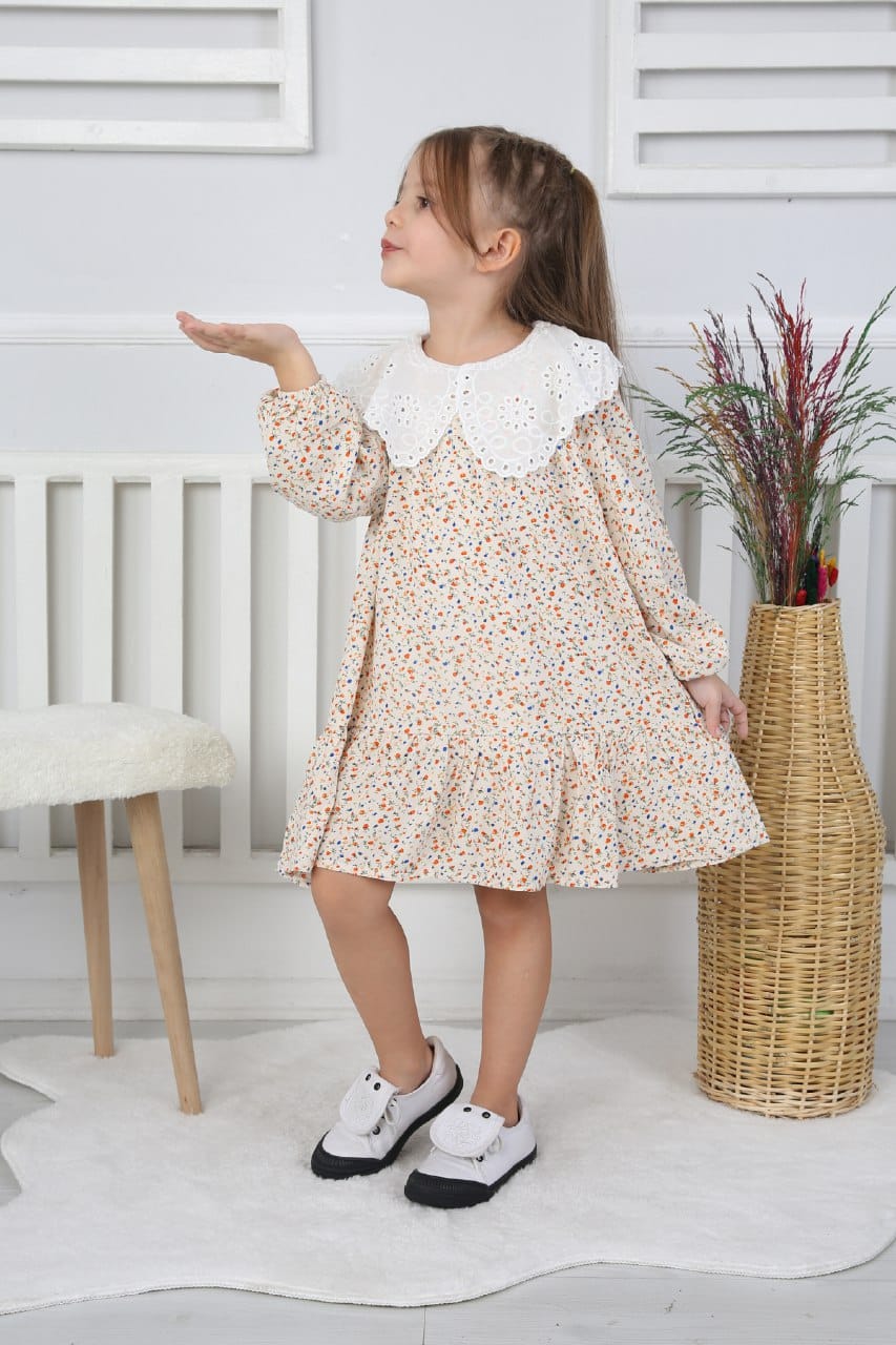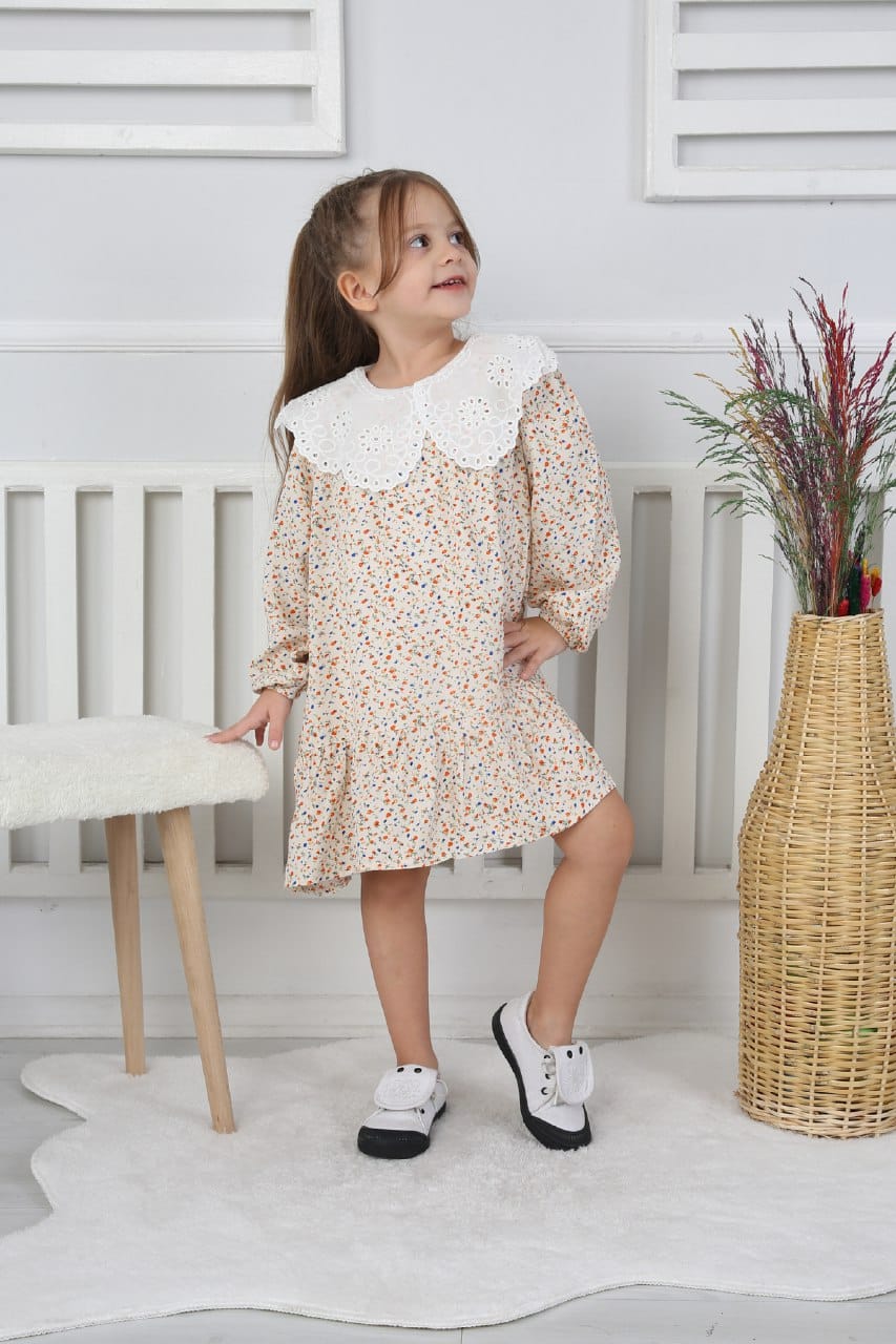 - Düz kesim ve yakası dantel detay Kendinden Çiçek Desen tasarımıyla sade ama etkileyici bir stil oluşturur.