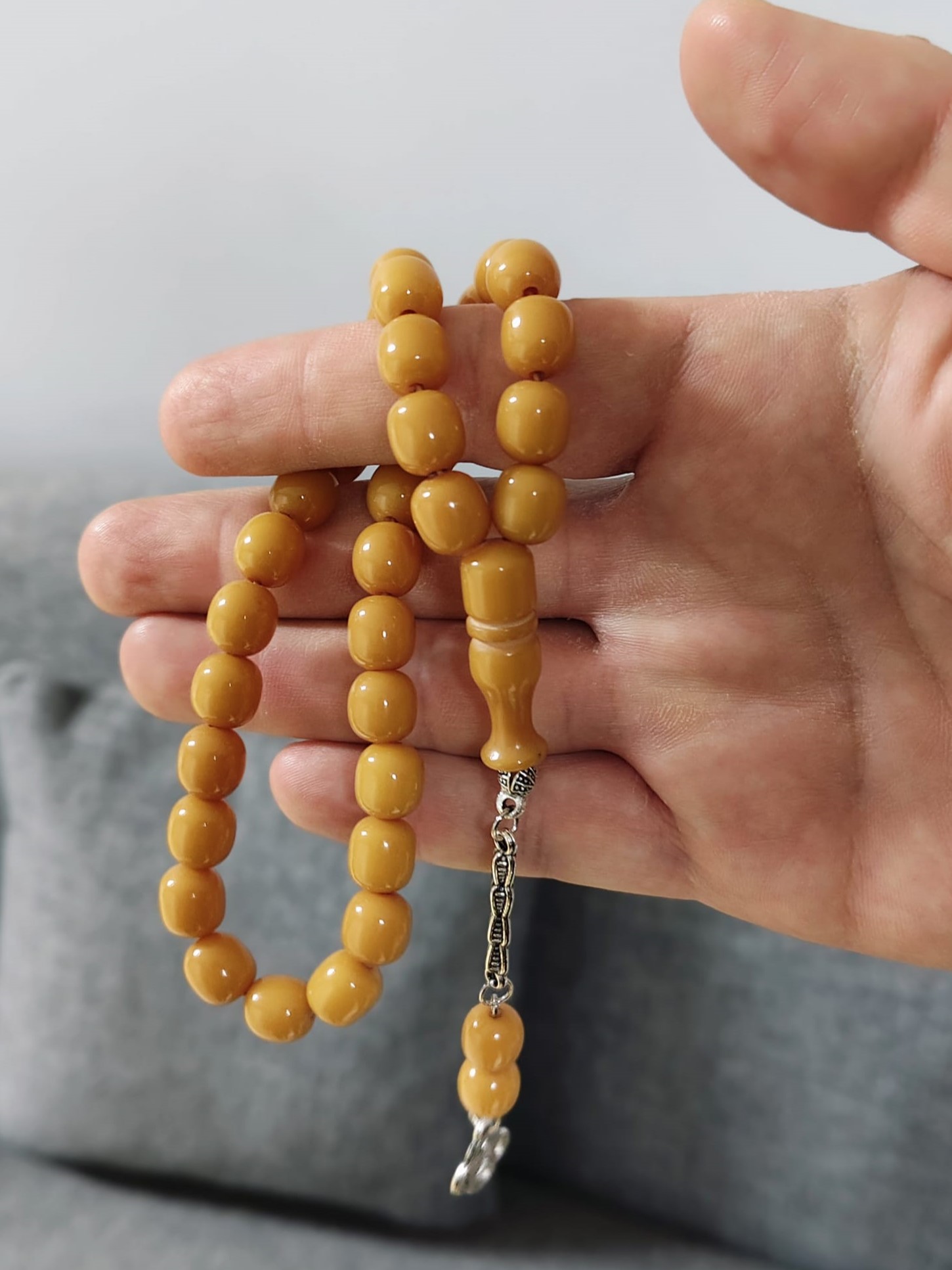 - Küre Kesim Sarı Toz Kehribar Tesbih